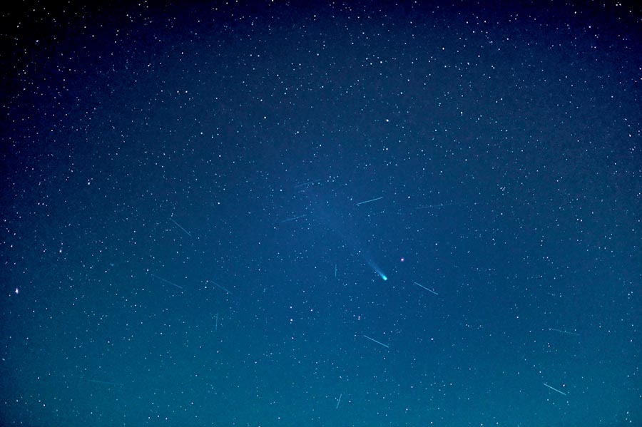 ちなみに、彗星の周りに写っている白い線は全て人工衛星です、、、あまりの多さにびっくり!です。
